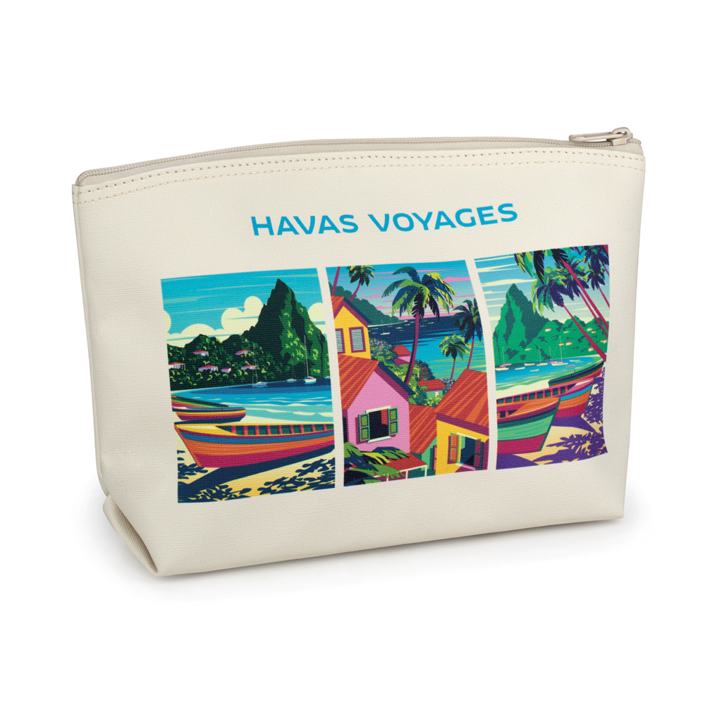 Bolsa neceser de viaje personalizable ideal para regalos originales. Marcaje a todo color en todo el artículo.