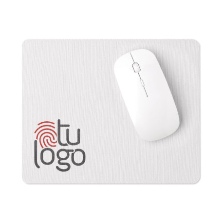 Alfombrilla de ratón fabricada de nylon con goma en la parte trasera, está disponible únicamente en color blanco y su medida es de 18 cm x 22 cm.