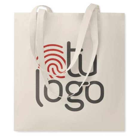 Bolsa de algodón ecológico resistente y duradera con asas largas. Fabricada en la Unión Europea, cumple con los estándares de calidad y respeto al medio ambiente. Su diseño versátil y práctico la convierte en la compañera perfecta para llevar tus objetos personales, ir de compras o simplemente como accesorio casual.