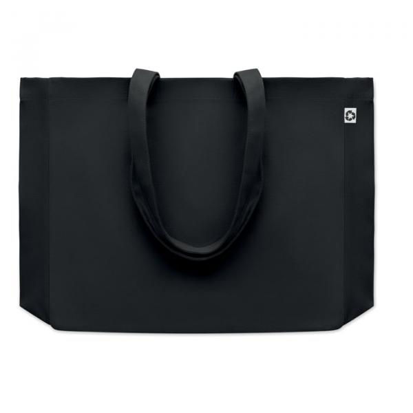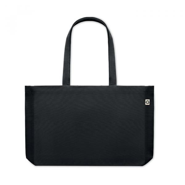 Bolsa para la compra o de playa fabricada en Algodón reciclado de 280gr. Tiene un diseño de asas largas y un fuelle para aumentar su capacidad interior.