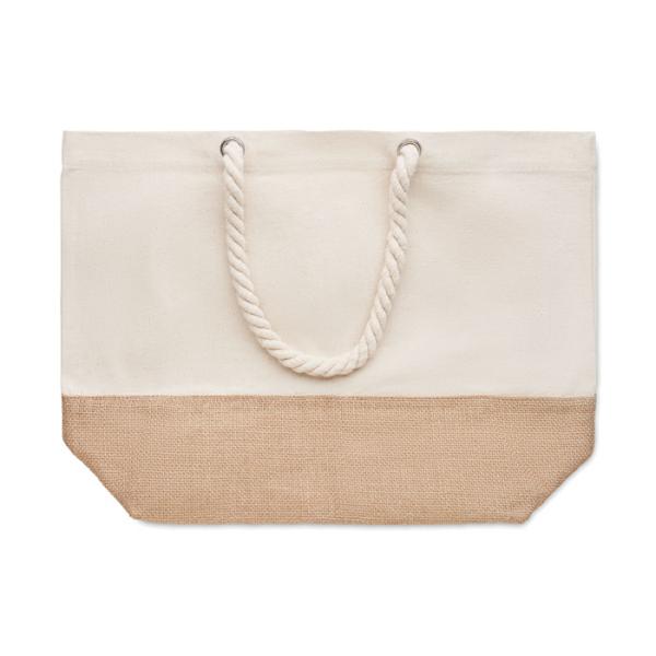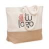 Bolsa versátil de playa o compras en canvas con asa en forma de cordón y base de yute. Resistente con 280 gr/m². Ideal para personalizar. Haz presente tu marca en el día a día de tus clientes.