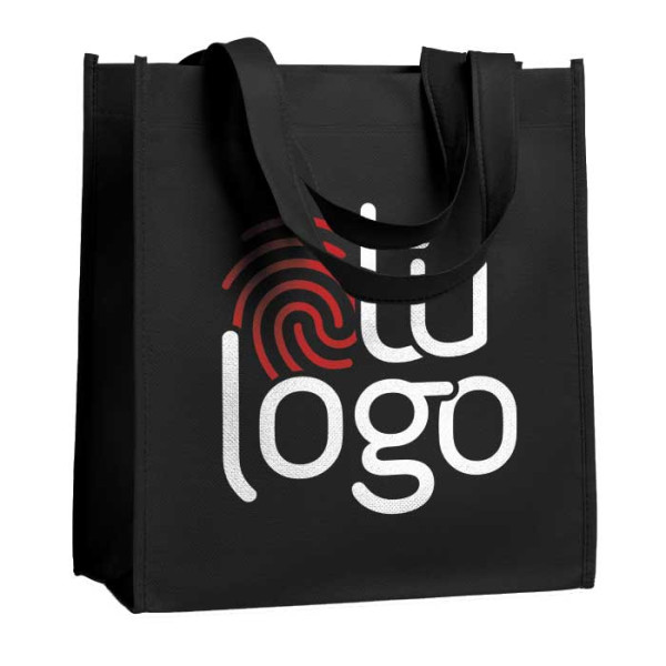 Bolsa de la compra termosellada fabricada en TST (Tejido sin Tejer) de 80gr/m2. Tiene unas asas cortas y un fuelle para conseguir un mejor soporte para los productos del interior.