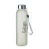 Botella de vidrio de 500 ml con revestimiento especial para sublimación que ofrece estilo y practicidad. Con tapa de acero inoxidable y asa para colgar, es perfecta para mantener tus bebidas frescas mientras te acompaña a donde vayas. Personalízala con diseños únicos y disfruta de una experiencia de hidratación excepcional.