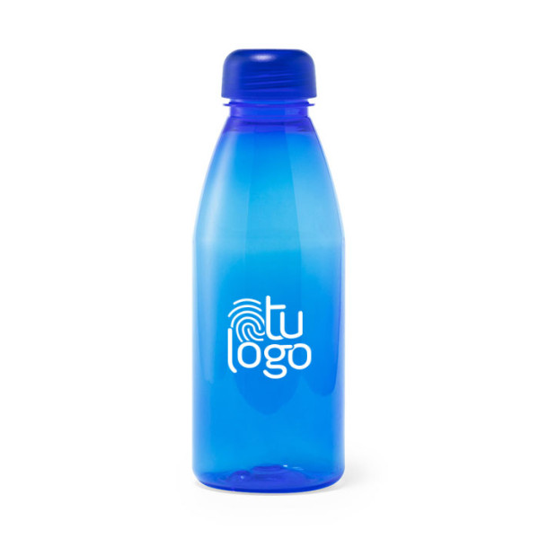 Botella de 550 ml fabricada en material Tritán, resistente al calor y libre de BPA. Incluye tapón a rosca de seguridad y está disponible en una amplia gama de colores. Producto con distintivo Made in Europe, ideal para personalizar con tu logo como regalo promocional.