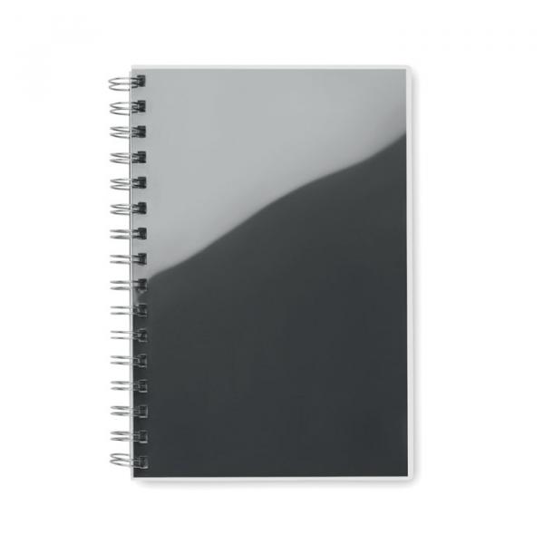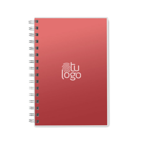 Libreta A5 con tapa de RPET y 80 hojas de papel rayado.