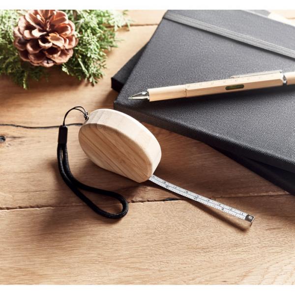 Esta cinta métrica combina la funcionalidad de una cinta métrica con el encanto del bambú, un material natural y sostenible. Su carcasa redondeada de bambú le da un aspecto único y elegante.