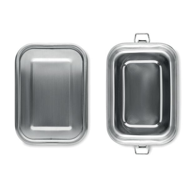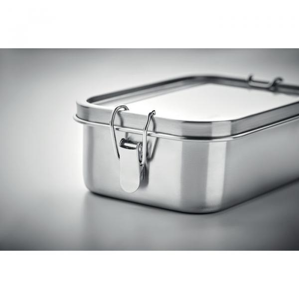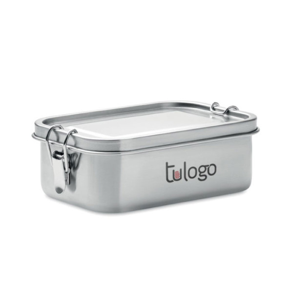 Fiambrera de acero inoxidable con capacidad de 750 ml, hebillas laterales fuertes para evitar fugas y diseño elegante. Ecológica y duradera, ofrece una opción segura y fácil de limpiar. Personaliza esta fiambrera para destacar tu marca en la rutina diaria de tus clientes.