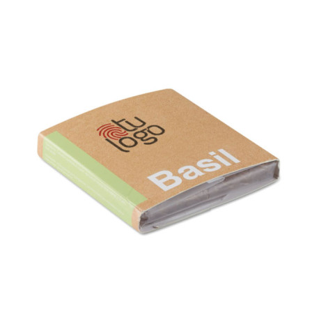 Mini bolsa que contiene semillas de albahaca y abono para el jardín, con el que al incorporal 300ml de agua, obtendrás 1 litro de abono para poder plantar las semillas.