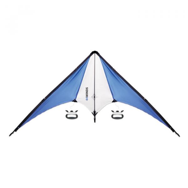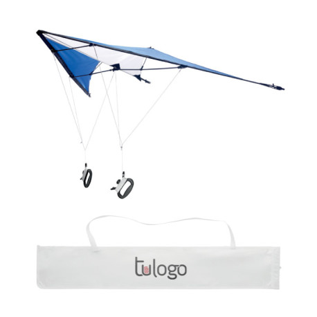 Cometa de poliéster Ripstop 210T con 2 asas, presentada en estuche. Personalizable con el logo de tu empresa en la cometa y el estuche. Disponible en negro o azul. Regala diversión y promociona tu marca al aire libre.