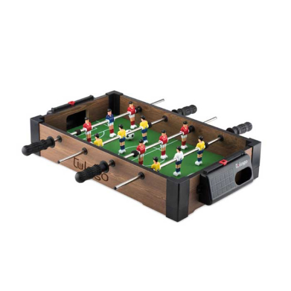 El Mini Futbolín es una emocionante versión en tamaño reducido del clásico juego de futbolín. Se sirve desmontado para mayor comodidad. Personaliza este mini futbolín con el logo de tu empresa mediante diferentes técnicas de marcaje.