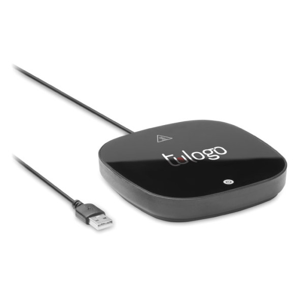 Calentador de tazas con USB en ABS. Mantiene las bebidas calientes hasta 45°C. Dispone de conexión USB. Ideal para personalizar con tu logo.