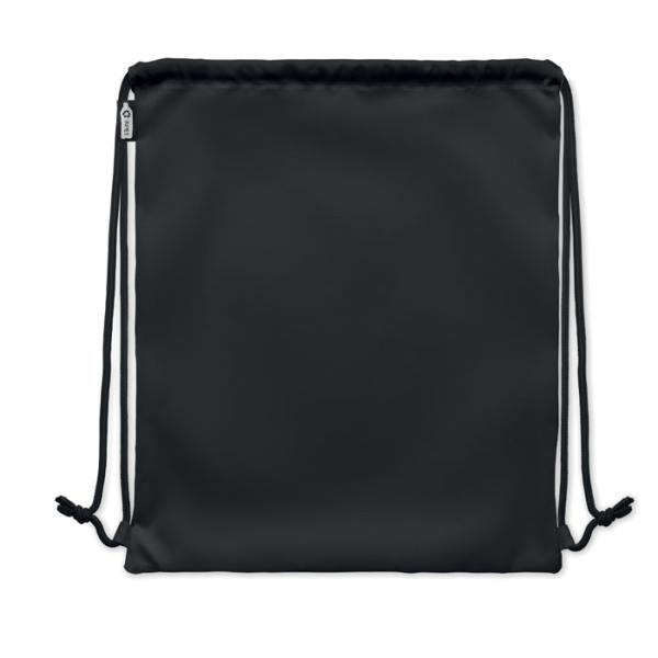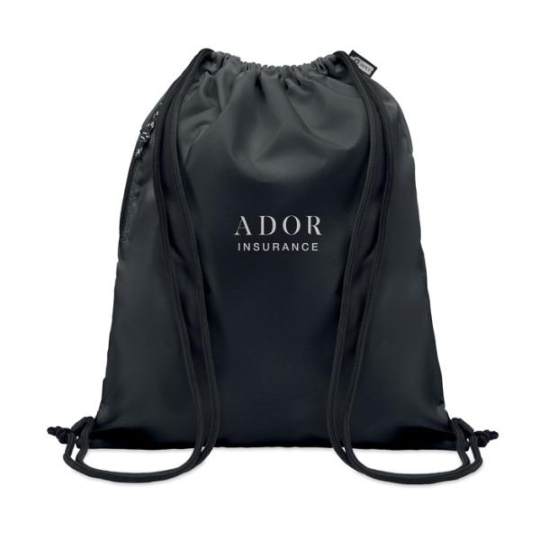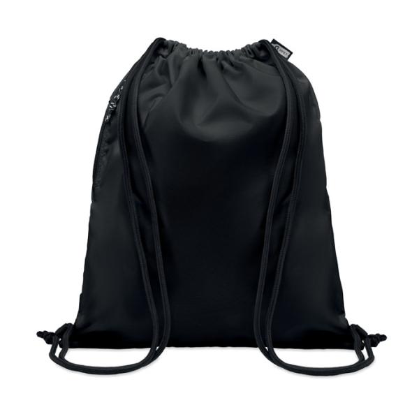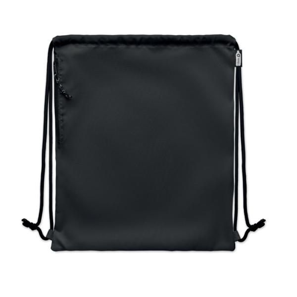 Bolsa de cuerdas grande en poliéster RPET 300D con bolsillo exterior lateral con cremallera. Cordones gruesos. Ideal para personalizar con tu logo.