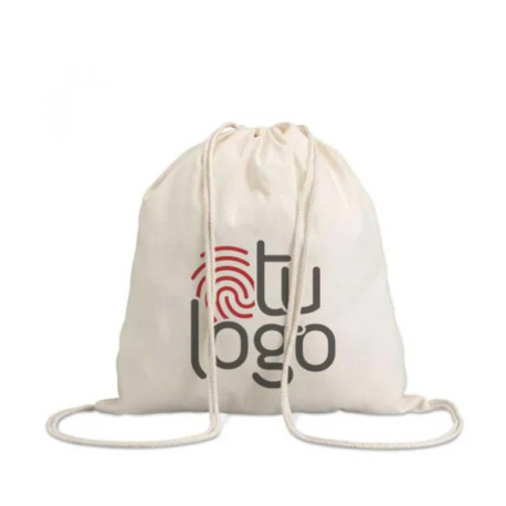 Mochila de cuerdas de algodón 100gr/m² con certificado de calidad. Sistema de cierre y para colgar en la espalda. Destaca tu marca en la rutina diaria de tus clientes.