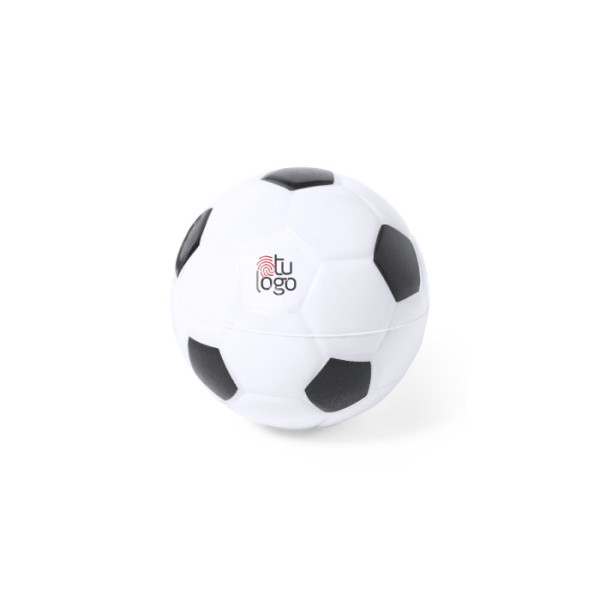 Pelota antiestrés con diseño de fútbol, fabricada en suave PU. Ideal para personalizar con tu logo y promocionar tu marca.