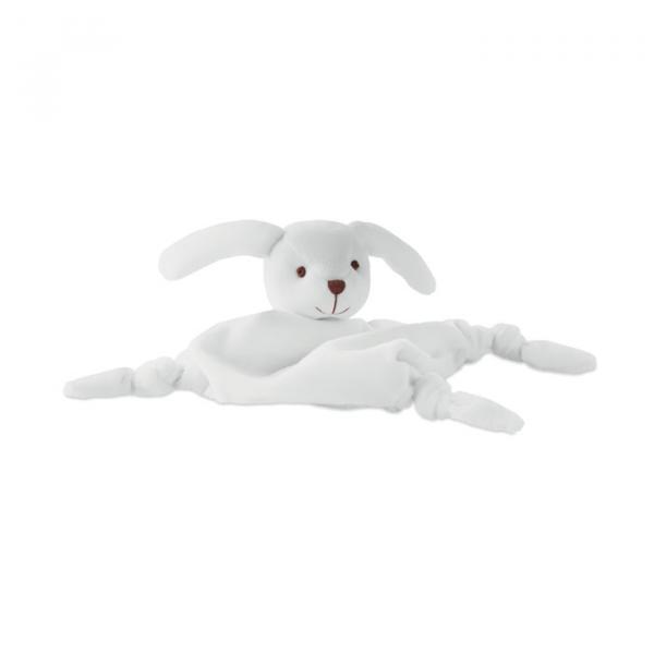 Doudou para bebé de color blanco que simula mediante un rombo la forma de un conejo. Su tacto de una suavidad excepcional hará que ningún bebé quiera separarse de él. Se puede personalizar mediante bordado.