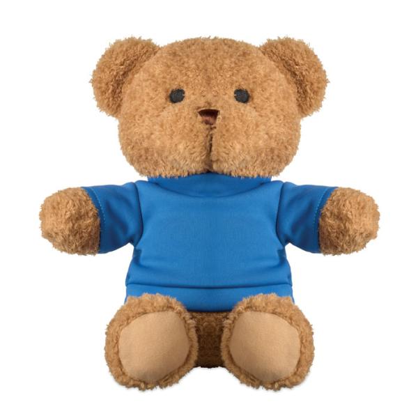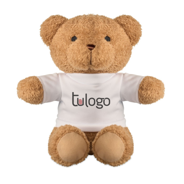Osito de peluche con camiseta. Impresión por sublimación disponible únicamente en el modelo blanco. Apto para personalización corporativa.