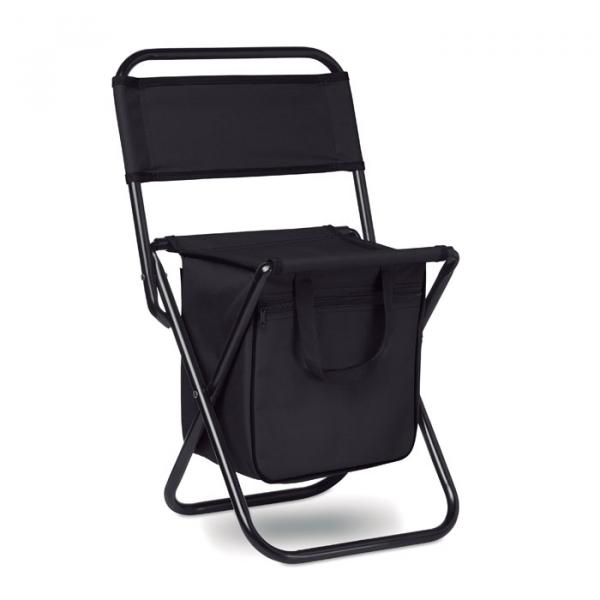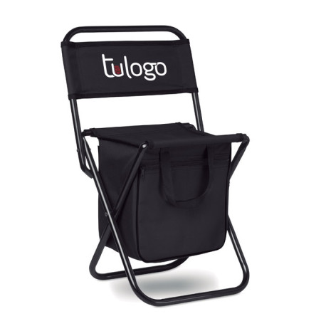 Silla portátil de exterior hecha con poliéster 600D, incluye un departamento nevera. El peso máximo que soporta este producto es de 85 kg.