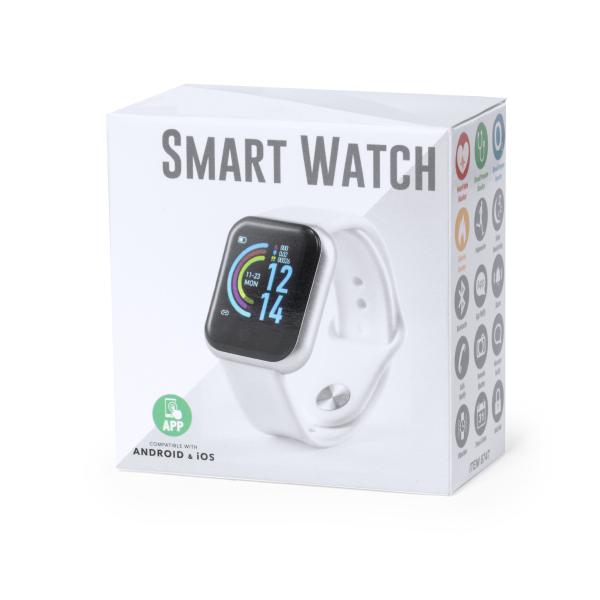 Reloj inteligente multifunción con conexión Bluetooth, pantalla LCD táctil de 1,44 pulgadas y correa de TPU. Incluye monitor de frecuencia cardíaca, presión arterial, oxígeno en sangre, monitor de sueño, podómetro y más. Resistente a salpicaduras y compatible con iOS y Android. Ideal para personalizar con tu logo.