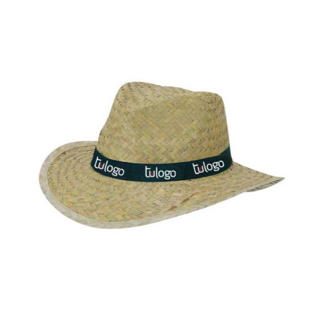 Sombrero de paja trenzada en tonalidad marrón natural, ligero y transpirable. Equipado con cinta interior ajustable para un uso cómodo y personalización con logotipo. Ideal para campañas de verano, viajes corporativos o merchandising outdoor.