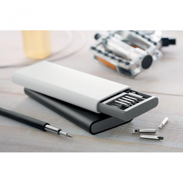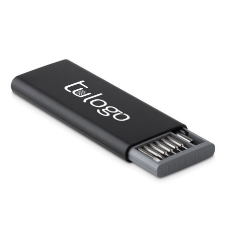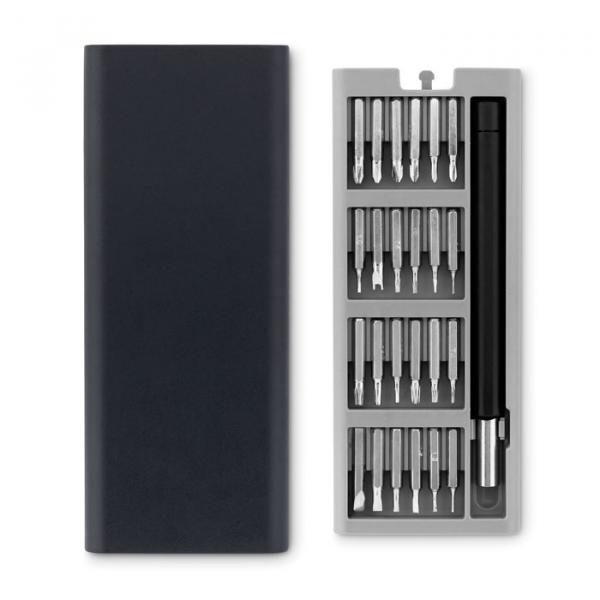 Este es un completo conjunto de 24 destornilladores pequeños de precisión, ideal para trabajos minuciosos. Viene presentado en una caja magnética de ABS con apertura a presión, lo que facilita su almacenamiento y transporte. Personaliza este set con tu logo y brinda a tus clientes una herramienta de calidad y personalizada.